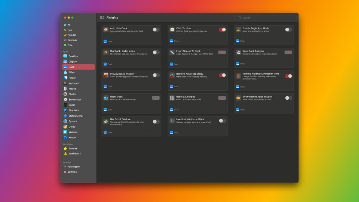Almighty lets you access over 50 utilities in a single Mac app. This puts power user features such as copying text from images, adding window preview thumbnails to the dock, and many others within eve