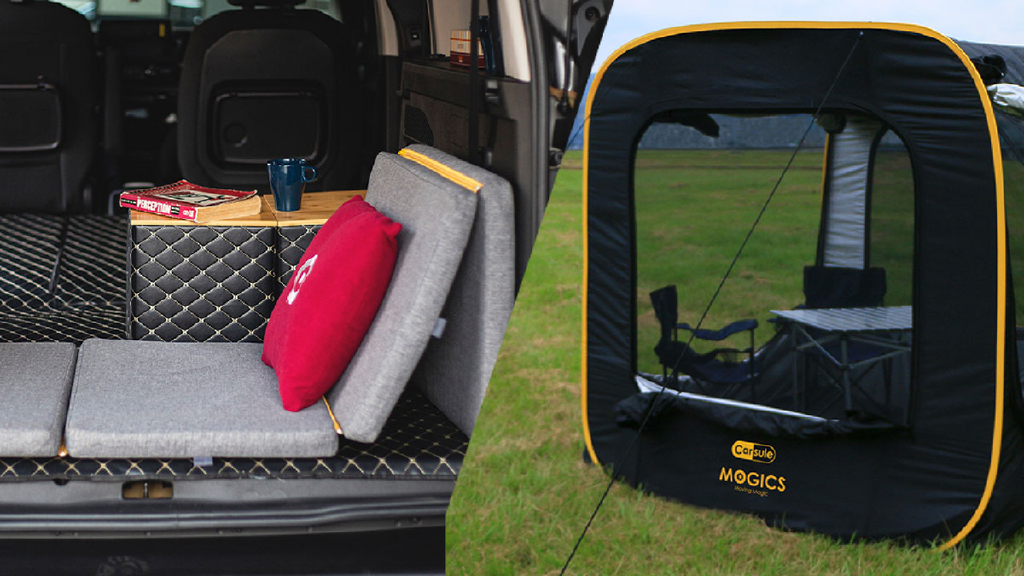 The Carsule pop-up cabin and inflatable mattress are great for camping and tailgating.