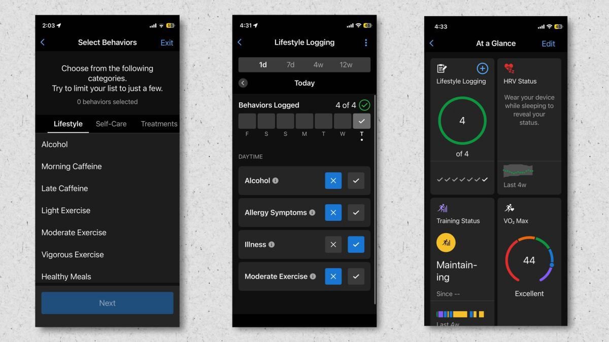 The “lifestyle logging” feature introduced with Garmin’s Venu 4 watch announcement isn’t limited to that watch. It now seems to be available to all Garmin users. You need an HRV-capable device to use