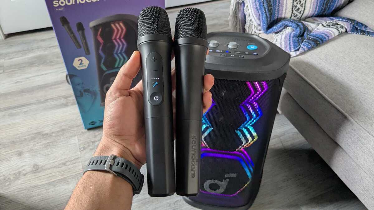 The Soundcore Rave 3S is a karaoke speaker with two microphones that can make any song you play into a karaoke track with no vocals by just pushing a button on the microphone. You can get it for $299.