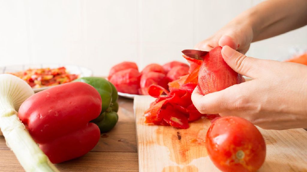 This method for peeling tomatoes is fast and can impart a desirable charred flavor.