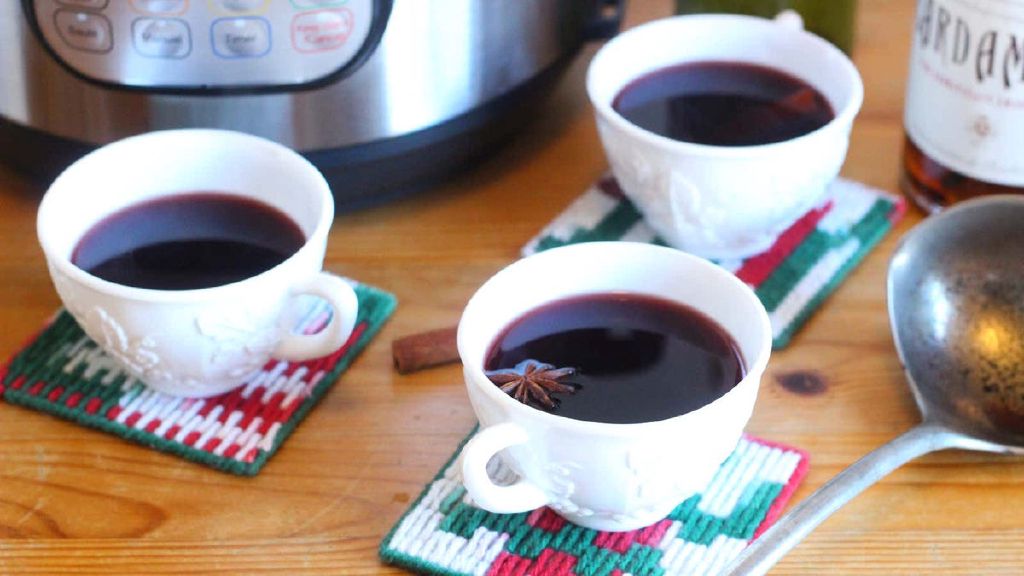 The toddy is made with gin, the wine is mulled in the microwave, and the Wassail is from Trader Joe’s (sorry to my British readers).