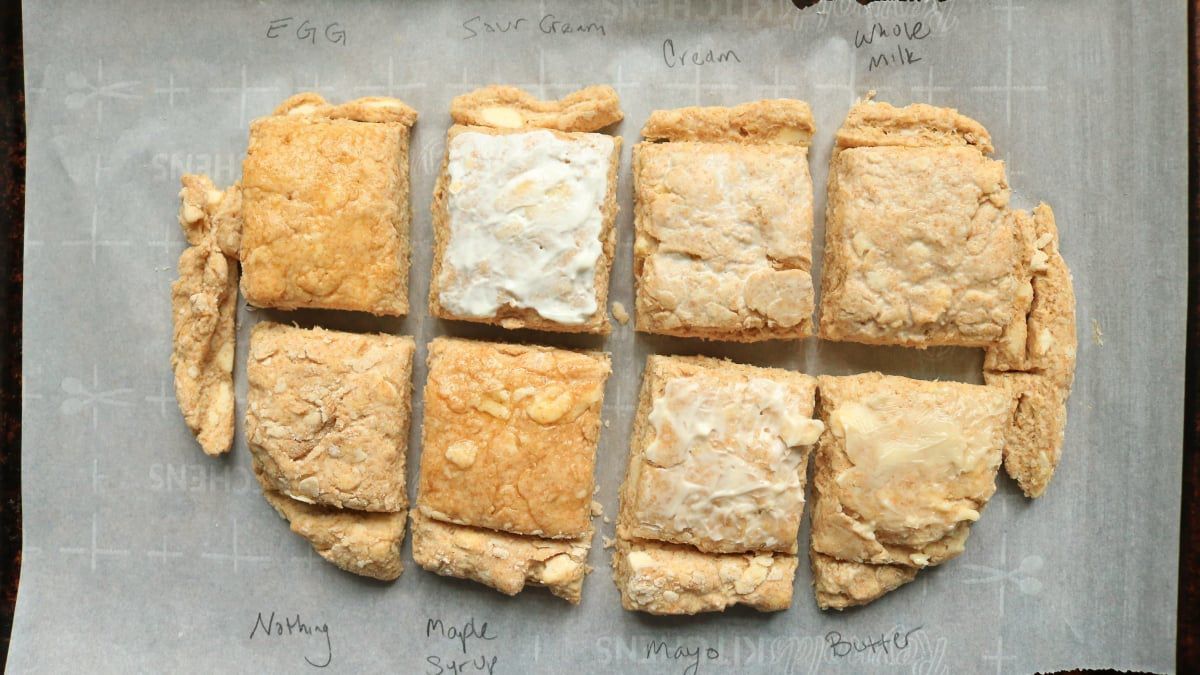 I tested out six non-egg ingredients to see which one was the best at duplicating an egg wash on baked goods. Hands down, sour cream was the best replacement. Read on to see what other egg wash substi